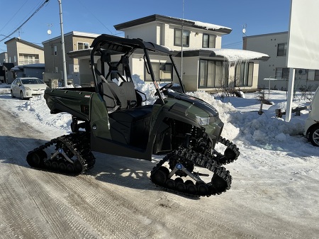 CAMSO X4Sトラックシステム、ハードトップ、KFI3500ウインチ、大径ステアリングを装備しました。